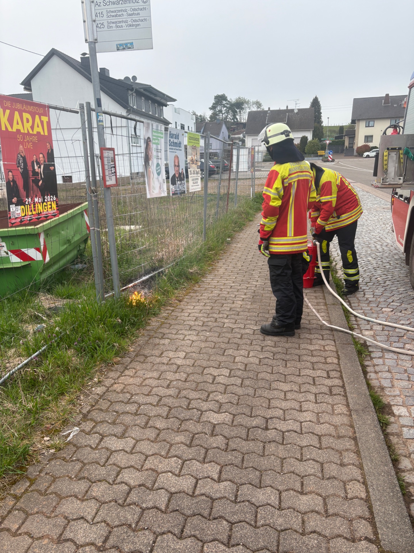 Am Freitagabend wurde der Löschbezirk Saarwellingen um 19:42 Uhr zu einem Flächenbrand alarmiert. Vor Ort konnte ein abgebranntes Werbeplakat, sowie darunter brennendes Gras zügig gelöscht werden.